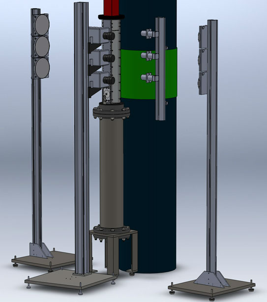Rendering of the experimental setup. Left: Shadowgraph system; Right: Entire experimental setup.
